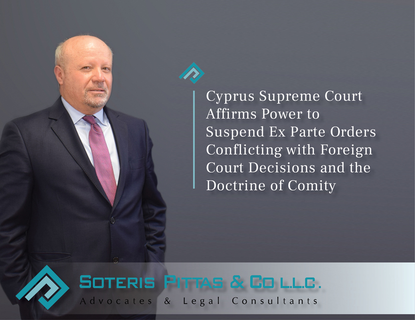 The Supreme Court of Cyprus granted the requested permissions and suspended the validity of the ex parte injunctions issued by the Cypriot lower Courts, pending the hearing of the Certiorari applications. The Court’s decision was based, inter alia, on the following grounds: