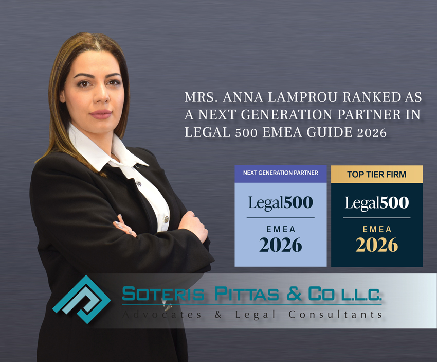 We are proud to congratulate our partner Mrs. Anna Lamprou, on being recognized in the 2026 LEGAL 500 EMEA rankings as a Next Generation Partner. This well-deserved distinction reflects our Partner’s outstanding expertise, dedication, and continued contribution to our clients and firm.
